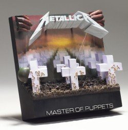 McFarlane Toys 3D Album Cover - Metallica "Master of Puppets". Released on February 26th, 1986 and having sold over six million copies to date, "Master of Puppets" was Metallica's third studio album and the last recorded with bassist Cliff Burton. The iconic imagery of the album's cover and its status among the band's legion of fans as one of their best offerings made "Master of Puppets" an obvious choice to get the 3-D treatment.