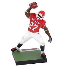 McFarlane Toys NCAA COLLEGE Football Sports Picks Series 3 Action Figure Ray Rice (Rutgers Scarlet Knights). Proudly display one of today's most prominent pro players in his college days with the Ray Rice Series 3 Action Figure. Measuring 6 inches in height, this partially articulated figure is decked out in his Rutgers uniform and positioned in a personalized action pose; a display base is also included. The College Football Series 3 Rutgers 6 Inch Action Figure - Ray Rice features: Includes 1 action figure and 1 base Figure is dressed in his college team uniform and positioned in a unique action pose Made of durable resin Articulated at multiple points Fits on a custom plastic base Package Dimensions: 12 x 7.25 x 3 inches Figure Height: 6 inches Weight: 7.9 oz