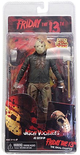 From part 4 of the Jason horror movies! This Friday the 13th Series 2 Jason Voorhees Action Figure Case features the main antagonist throughout the movies as a 7 1/2-inch action figure with 2 different versions of Jason Voorhees - a regular and battle damaged version - each with a unique mask and head sculpt. Just like in the Friday the 13th: The Final Chapter film, Jason comes with removable weapon accessories, including a machete, double headed-axe, and knife! Plus, each action figure features over 25 points of articulation.